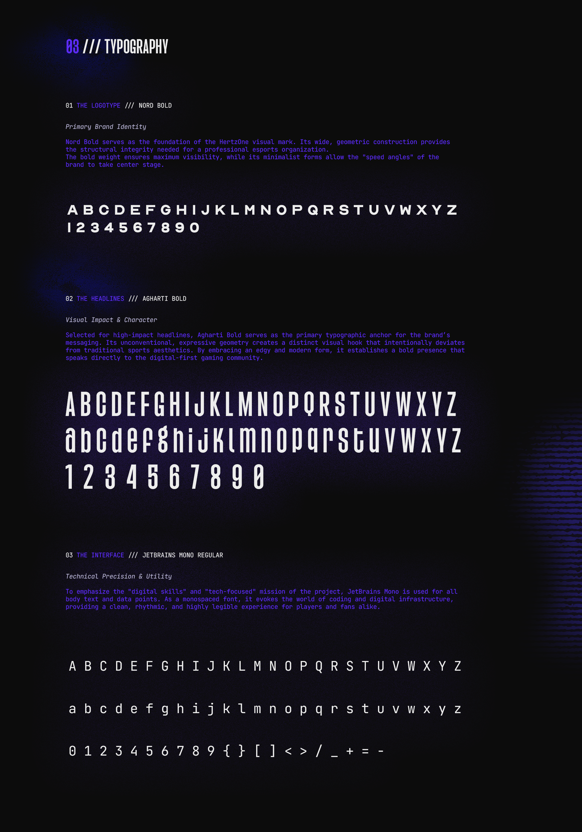 HERTZONE is a visual identity project rooted in the concept of frequency and high-impact energy. The brand identity centers around a sharp, geometric monogram that mirrors the dual nature of technology: precision and power. By utilizing a high-contrast palette of deep obsidian and electric violets, the visual system creates an immersive atmosphere that feels both futuristic and grounded. This case study explores the logo architecture, color theory, and environmental applications of a brand built for the next digital frontier.